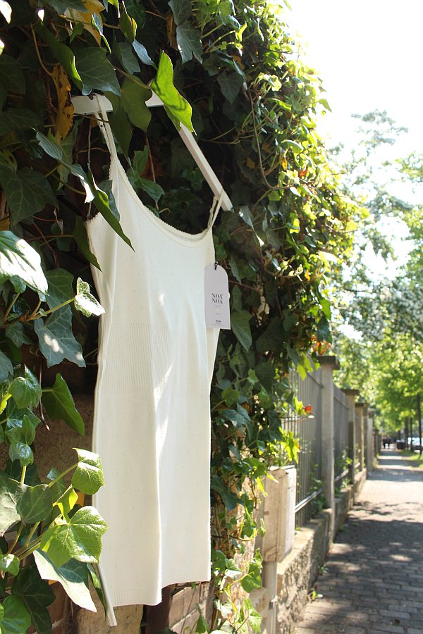 Dieses weiße Top von Noa-Noa muss sich nicht verstecken – schließlich hängt es an einem sehr idyllischen Plätzchen im Barockviertel Dresdens.