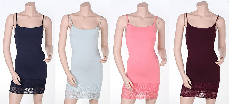 Aus der By Ti-Mo Frühlings- Sommerkollektion 2014: Slip Basic Dress Lace (1410111) in den Farben Chinablue, Pale Turquouise, Coral und Scarlet.