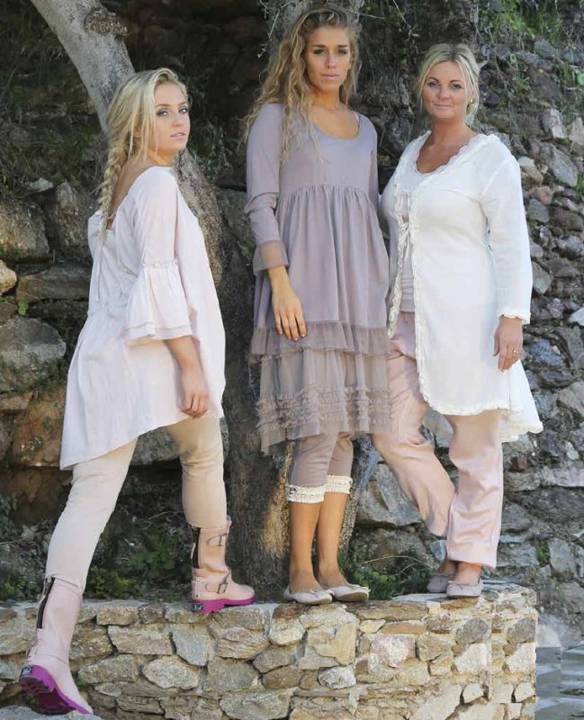 Hier zu sehen sind drei der bequemen Outfits von Miel aus Dänemark.