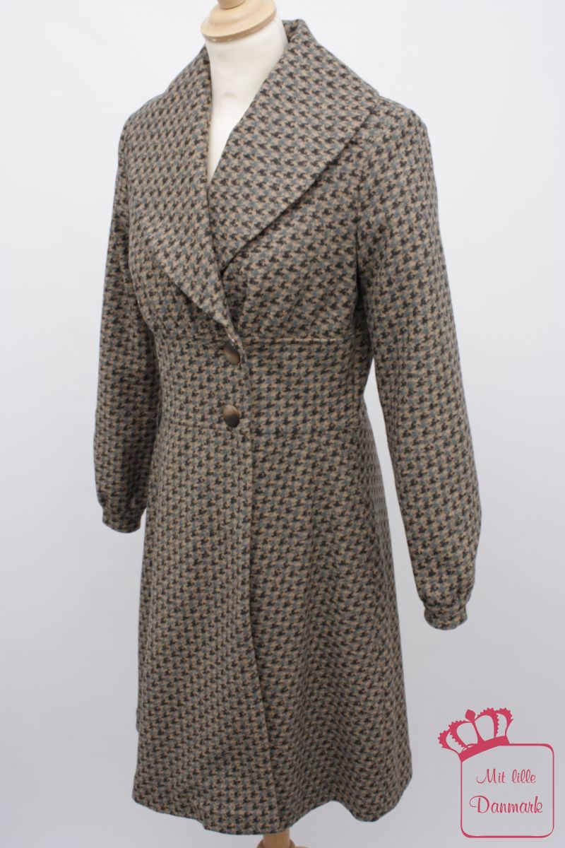 Von der dänischen Firma Container gibt es diesen taillierten und gemusterten Mantel „Mercedes Coat“ (8-2087) aus der Herbstkollektion 2012 in der Farbe petrol. Der Originalpreis: 297€.
