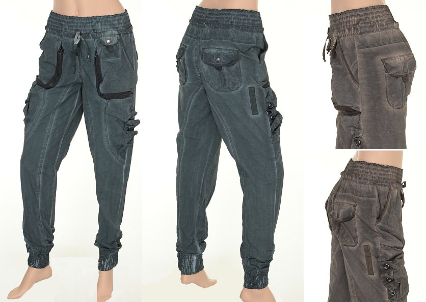 Hier zu sehen ist die lange Capri-Hose 4106-11 in den Farben Petrol (links) und Taupe-Brown (rechts).