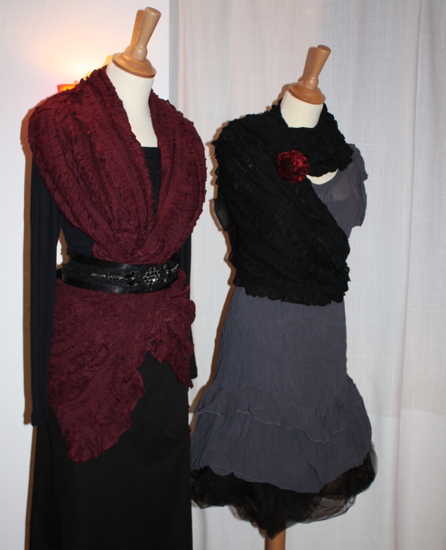 Viscosekleid mit Ballonunterrock und Tüchern, die man in verschiedenen Varianten wickeln kann